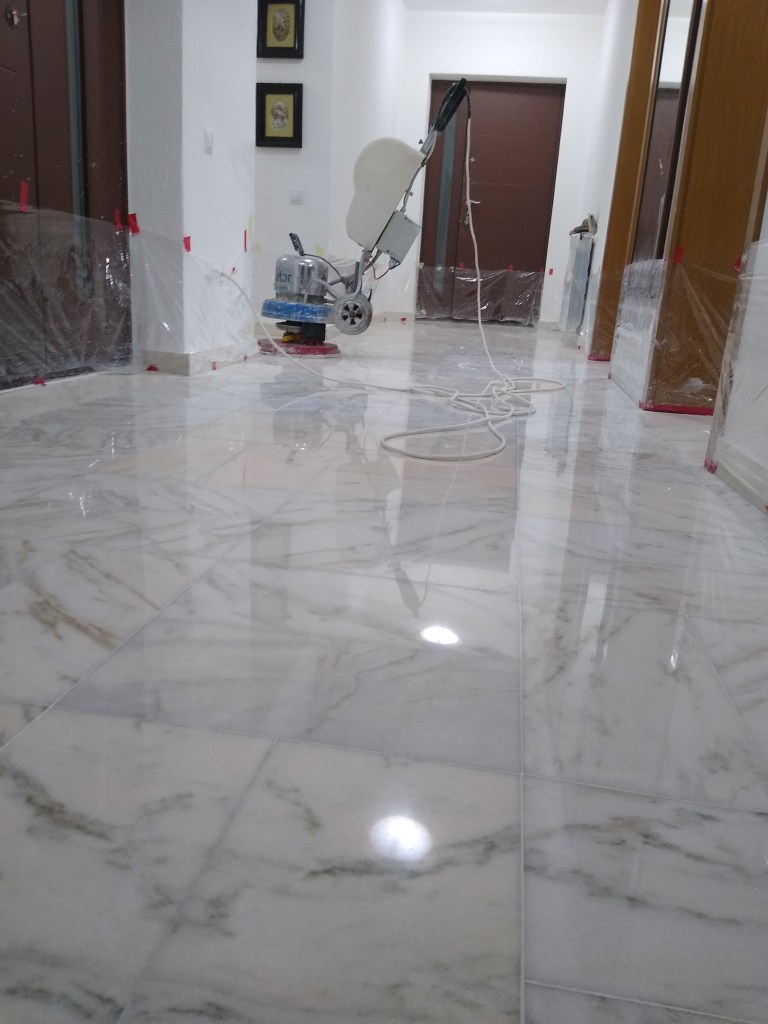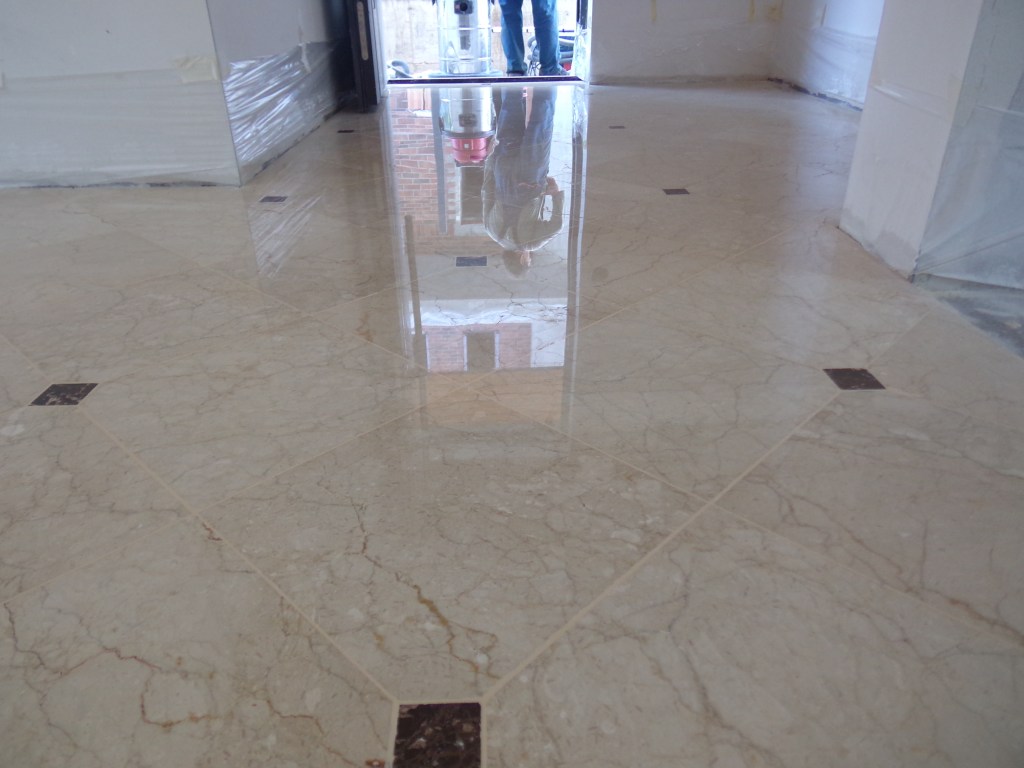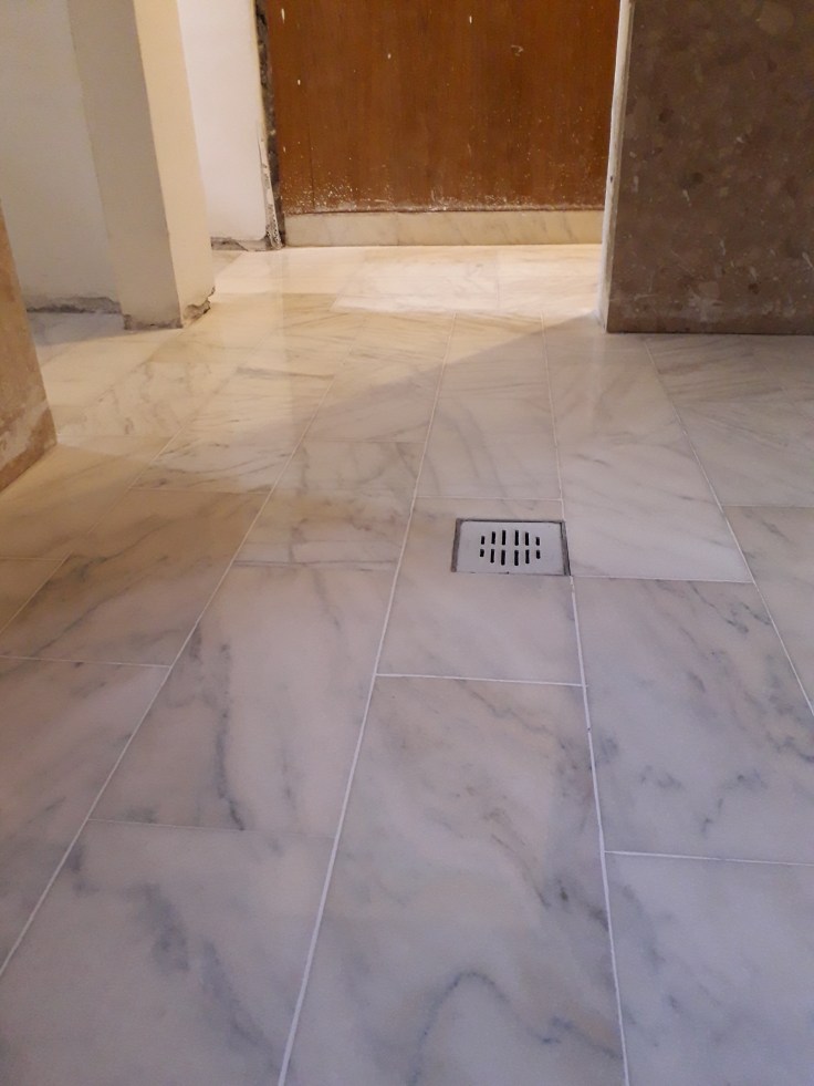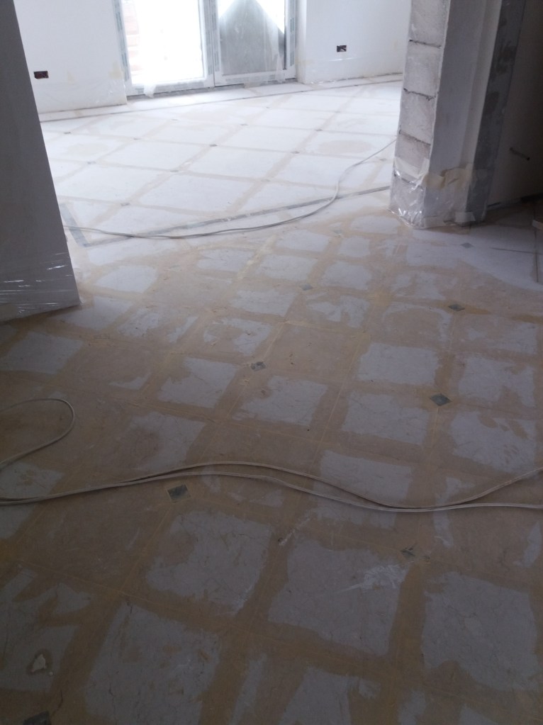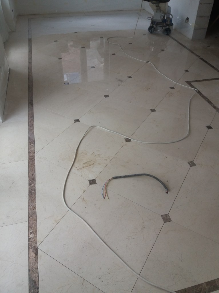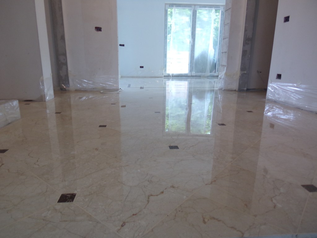 Pardoseala noua din marmura, slefuire dupa montaj si prelucrare completa :