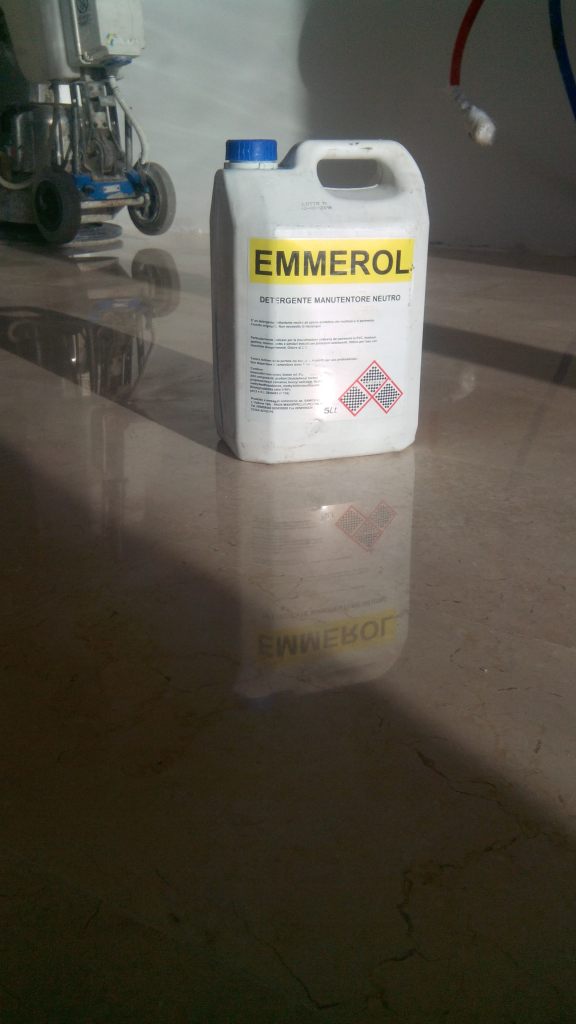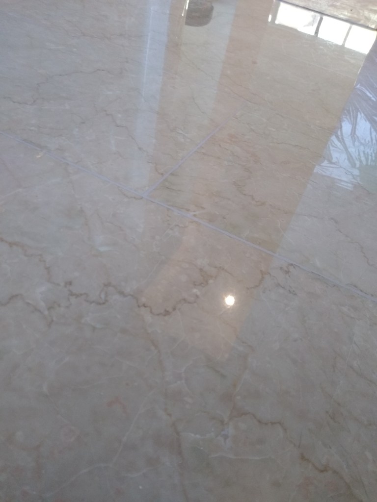 Reconditionare marmura Daino Reale, pardoseala cu probleme de estetica, impregnant nepotrivit aplicat de montator, care in timp devine o mare problema chiar daca pe moment pare grozav. acopera mici defecte insa in cateva luni arata urat. Curatare si lustruire traditionala, fara cristalizant :
