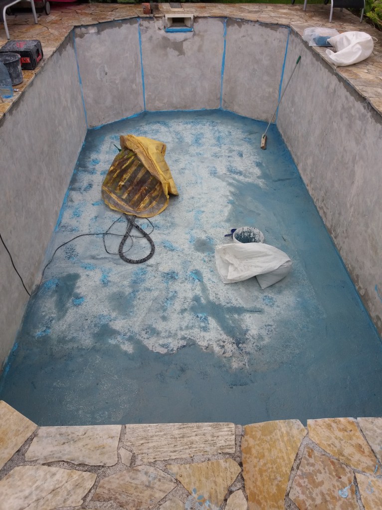 Exemplu de slefuire piscina, pereti si pardoseala, indepartare vopsea elastica clorcauciuc. Pregatire pentru renovarea piscinei :