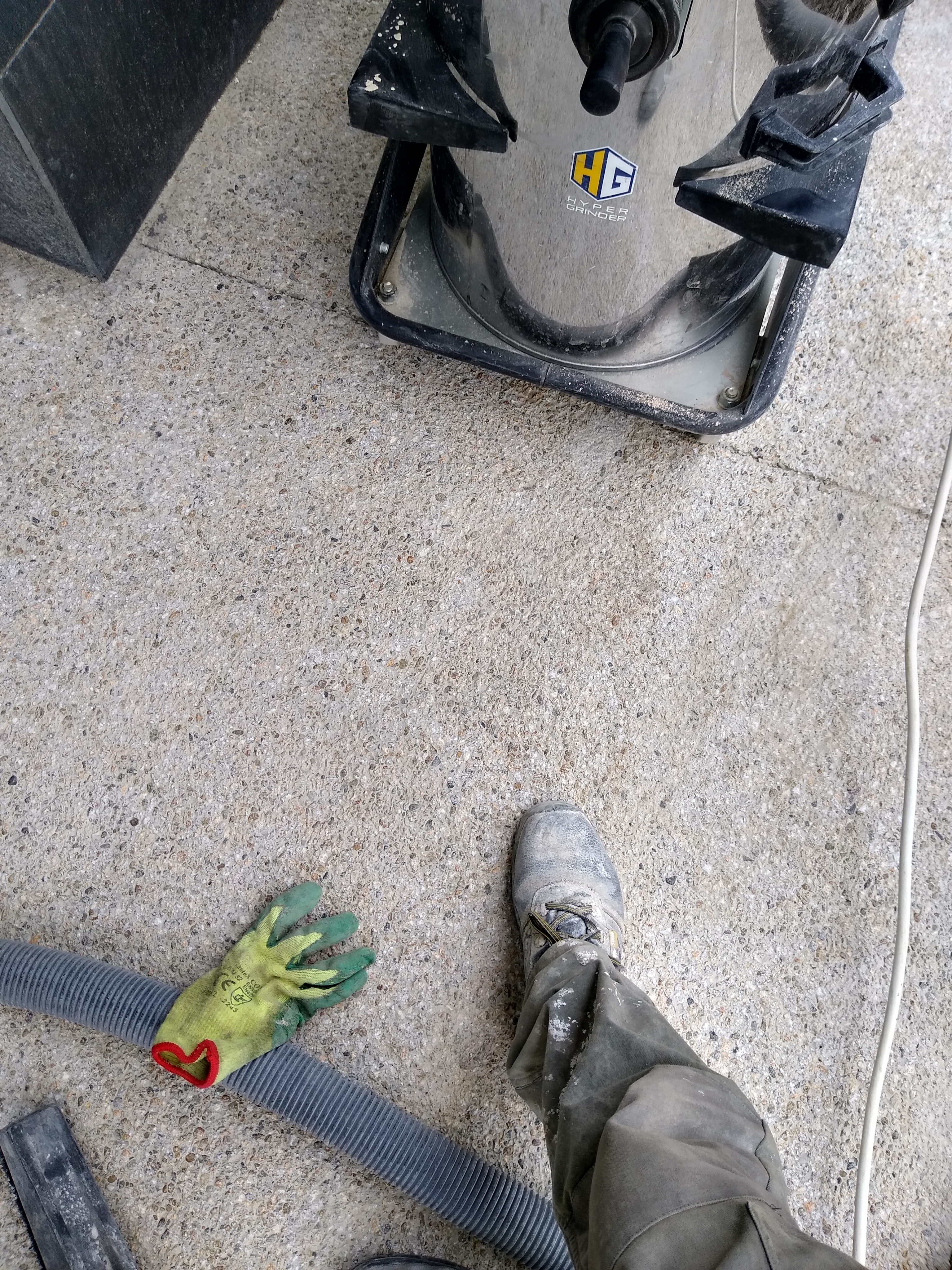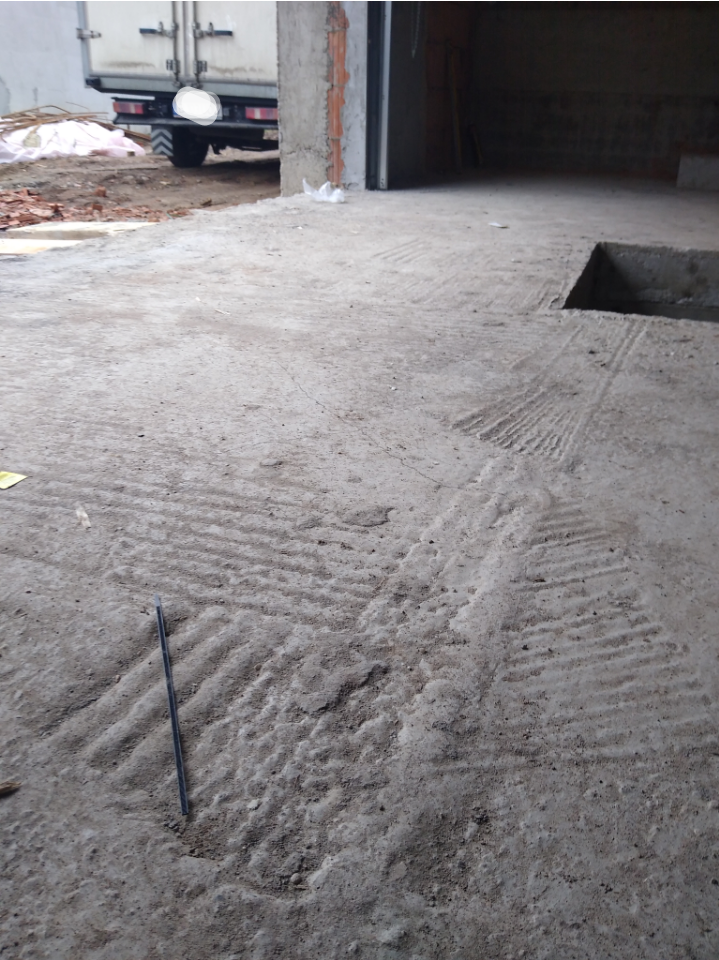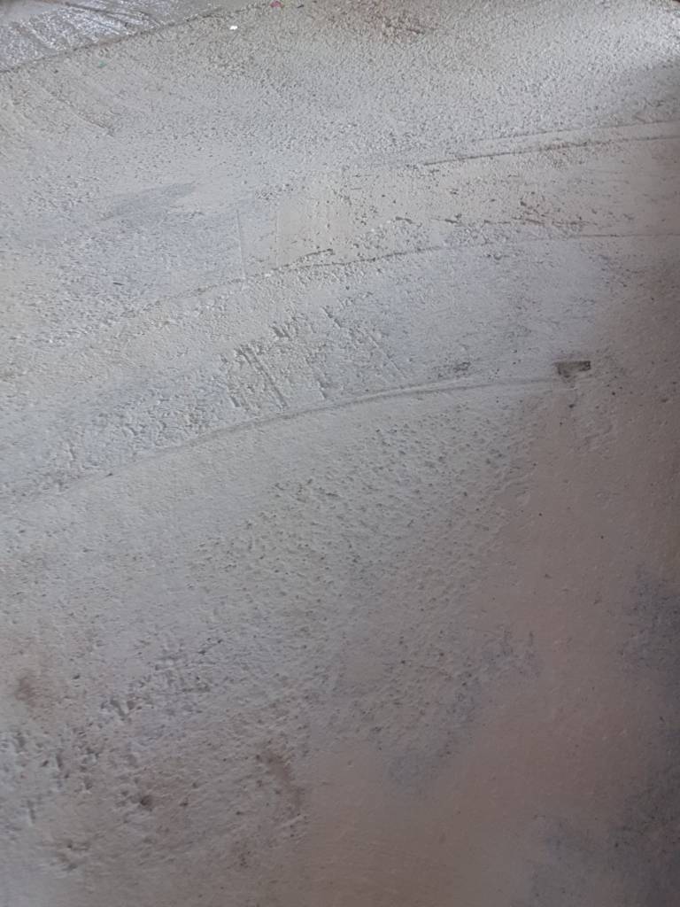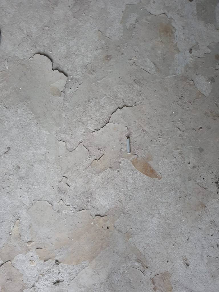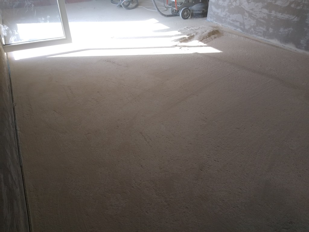 Exemplu indepartare prin slefuire a unui strat gros de autonivelanta pentru a ajunge inapoi la betonul initial :