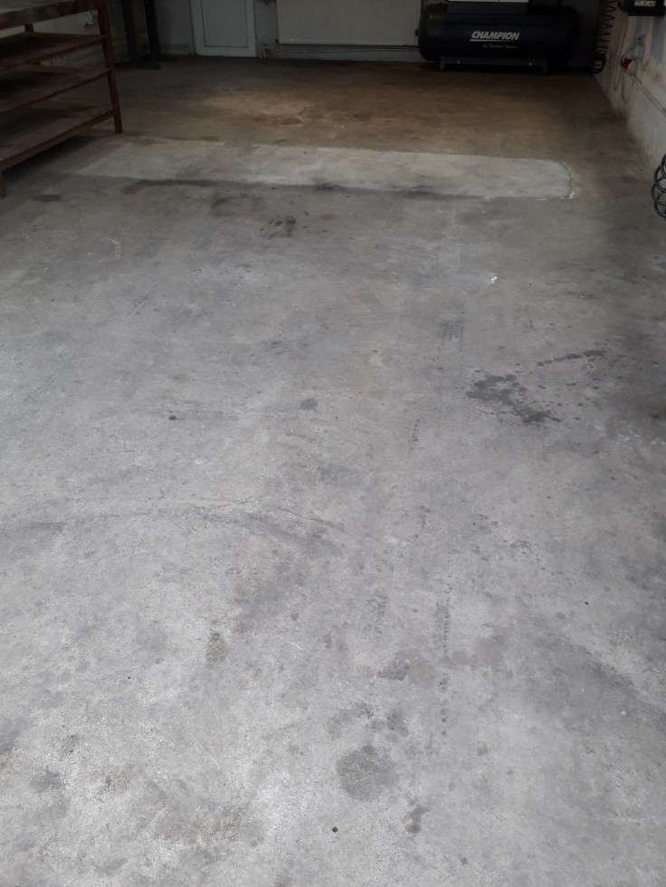 Exemplu slefuire pardoseala din beton in garaj, pregatire pentru aplicarea unui strat de vopsea de catre client :