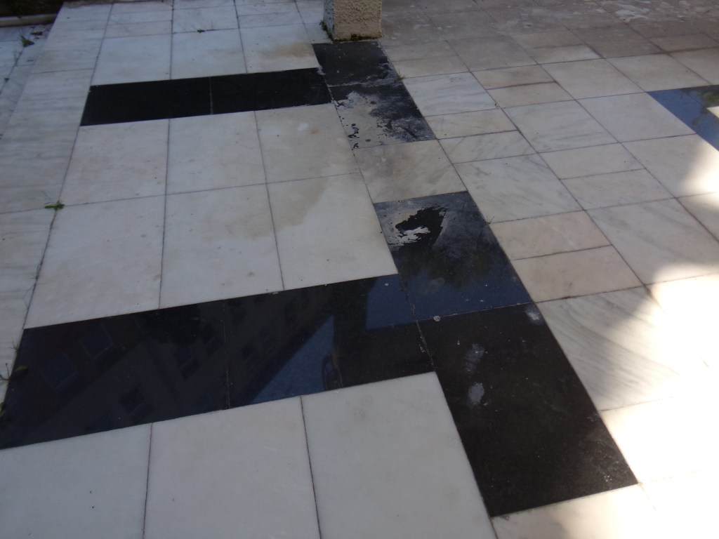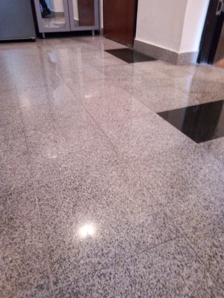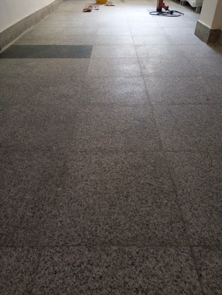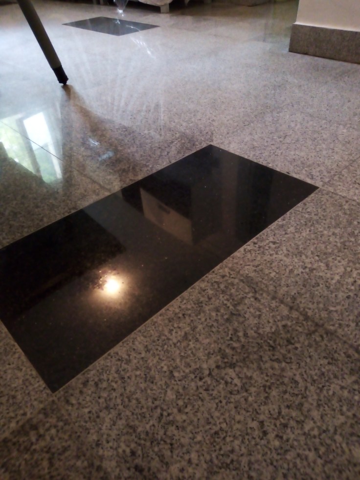 Pardoseala din granit gri si negru, slefuita si eliminate “buzele” dintre placi, refinisata lustruit si tratata :