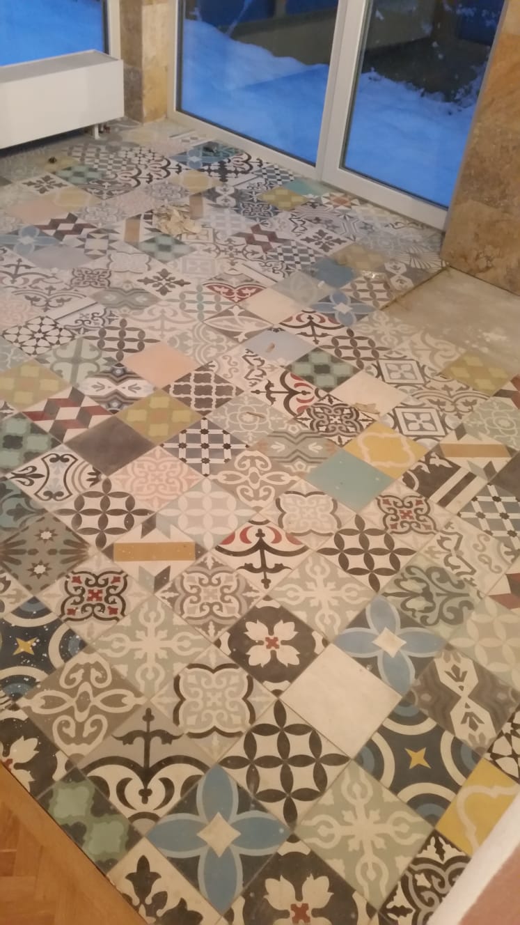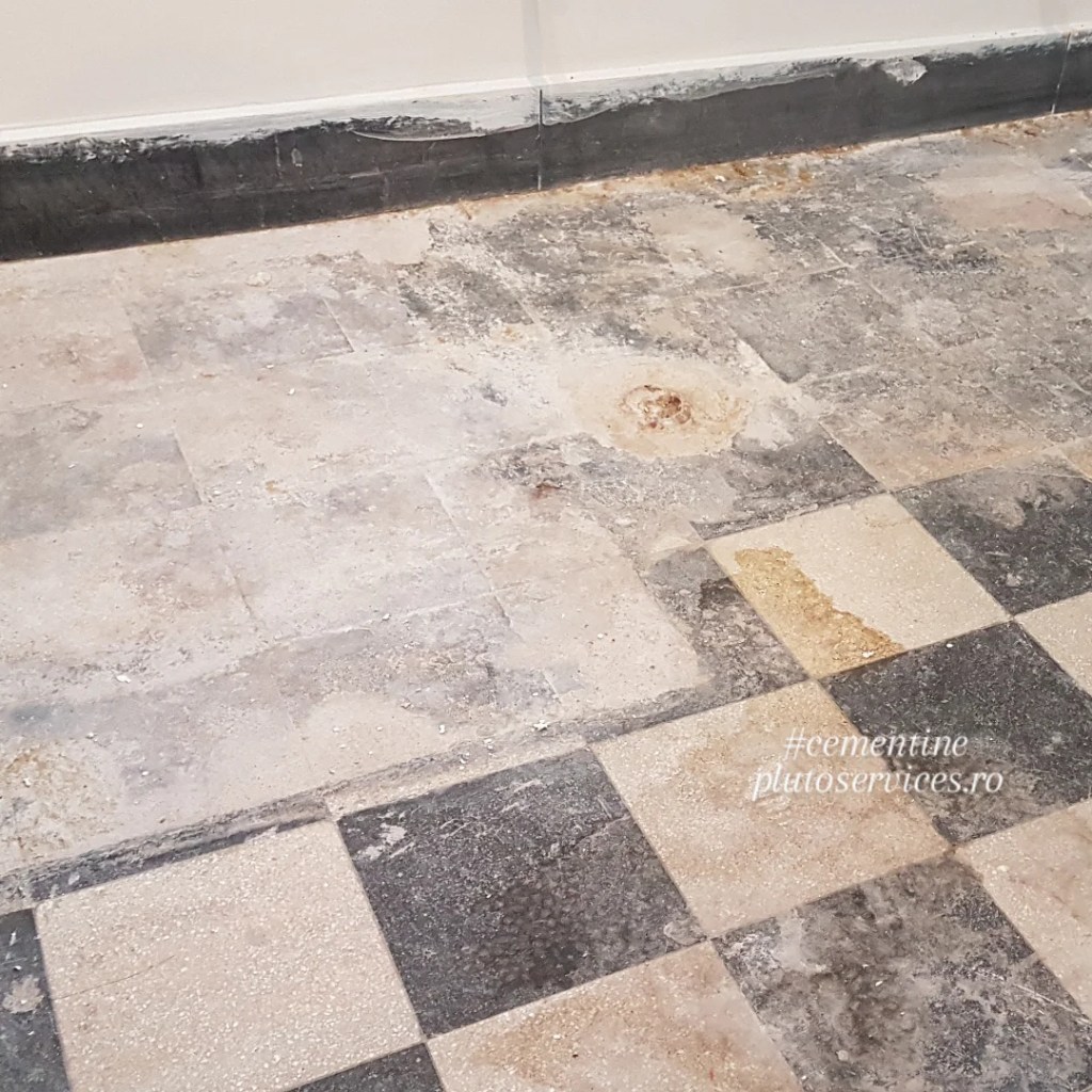 Reconditionare pardoseala din mozaic vechi (cunoscuta la italieni ca si cementine, mozaic hidraulic, etc) :