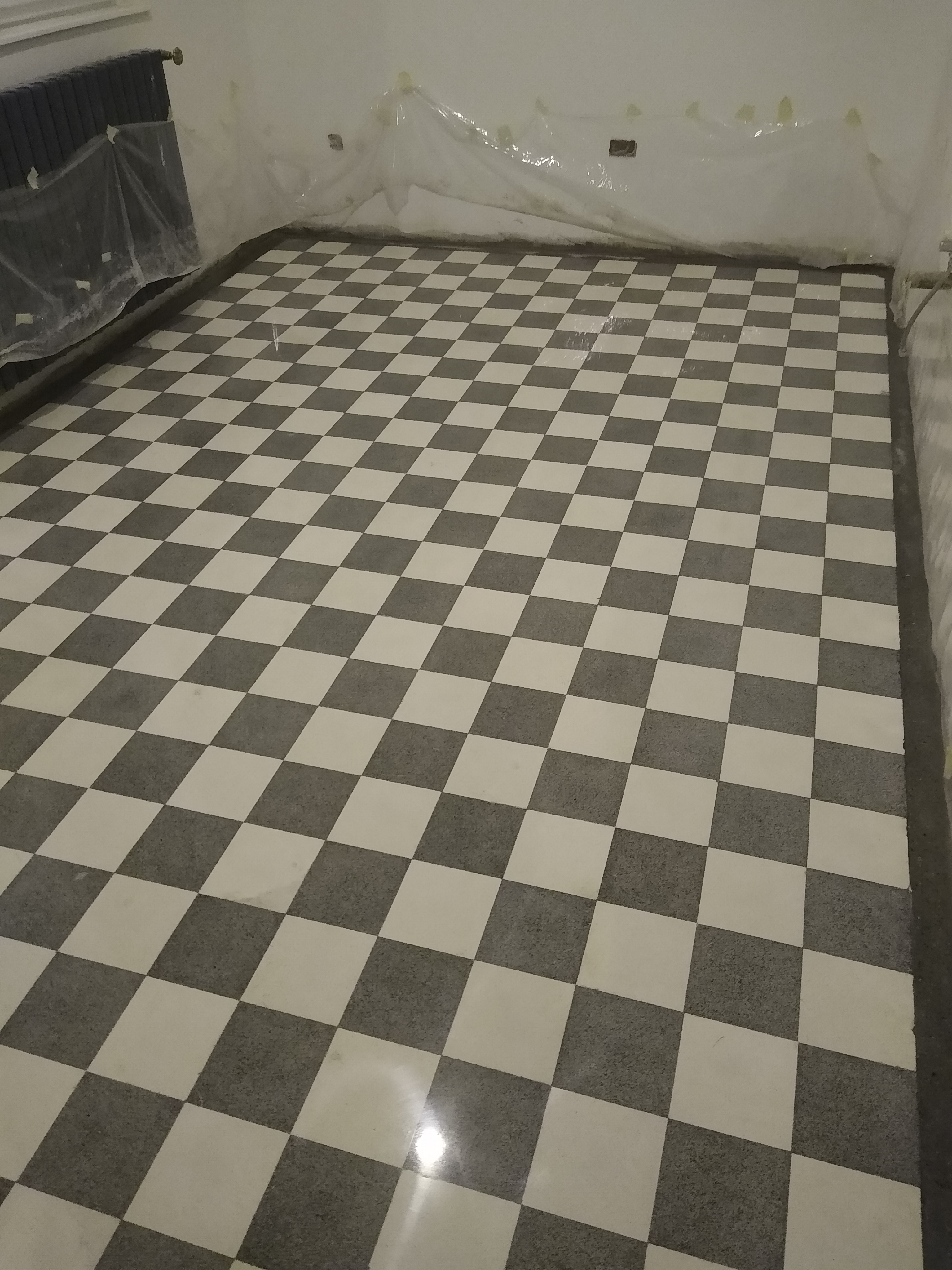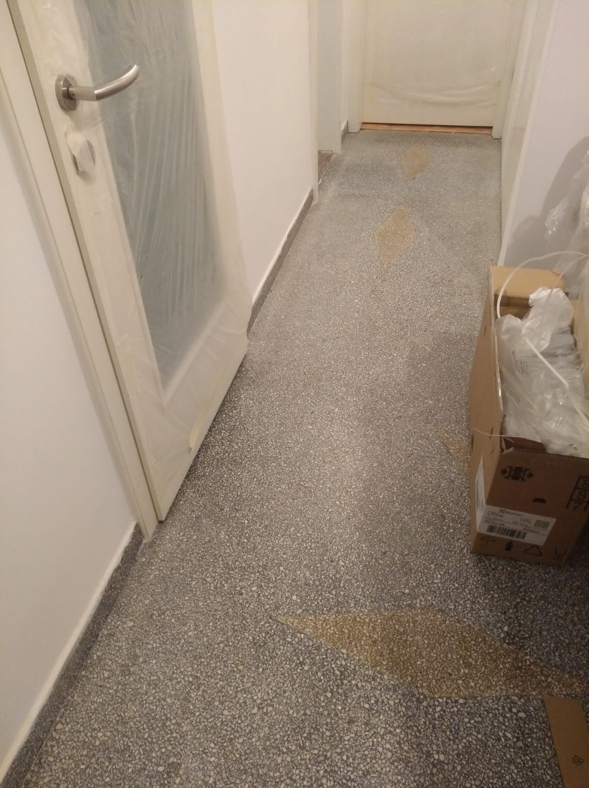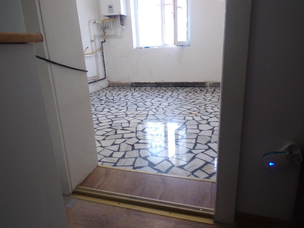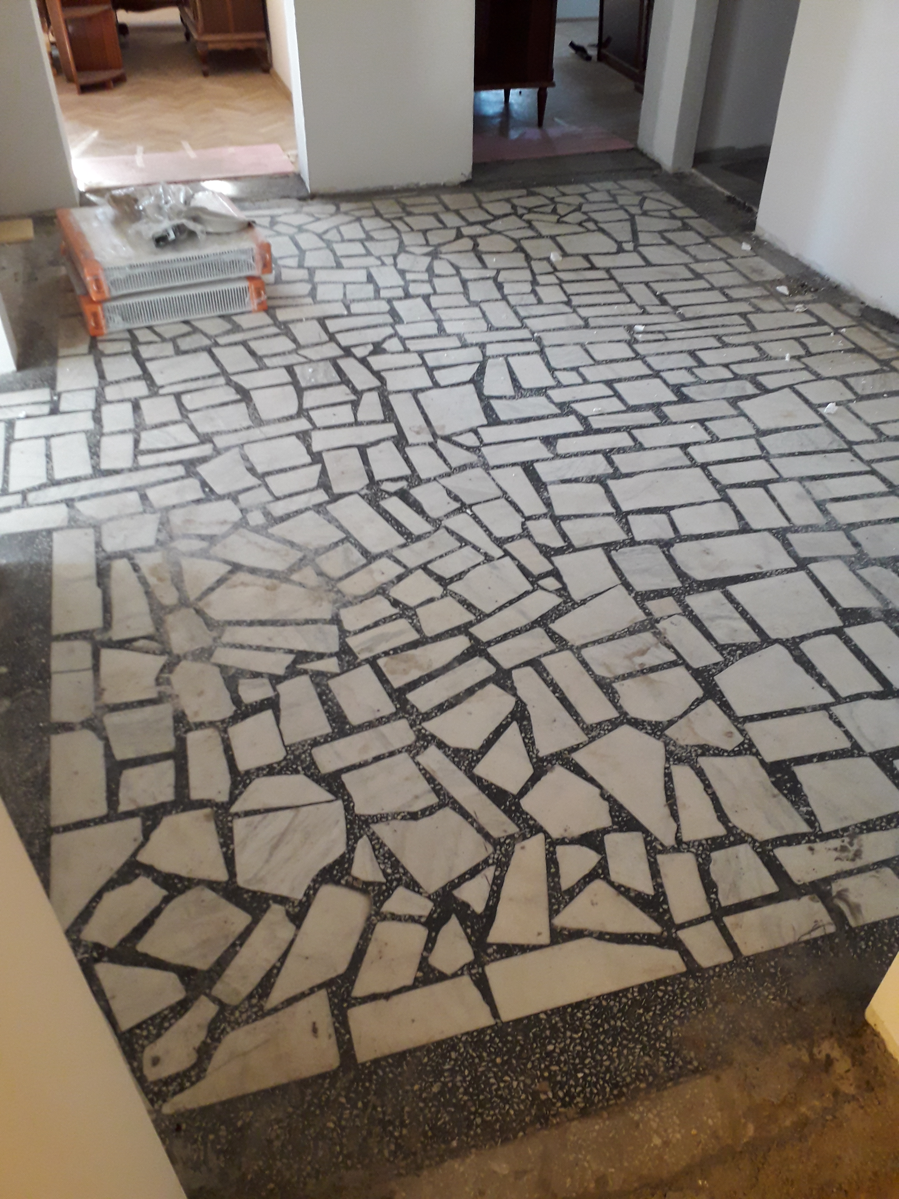 Exemplu de pardoseala din mozaic clasic in apartament, slefuita, chituita si lustruita :