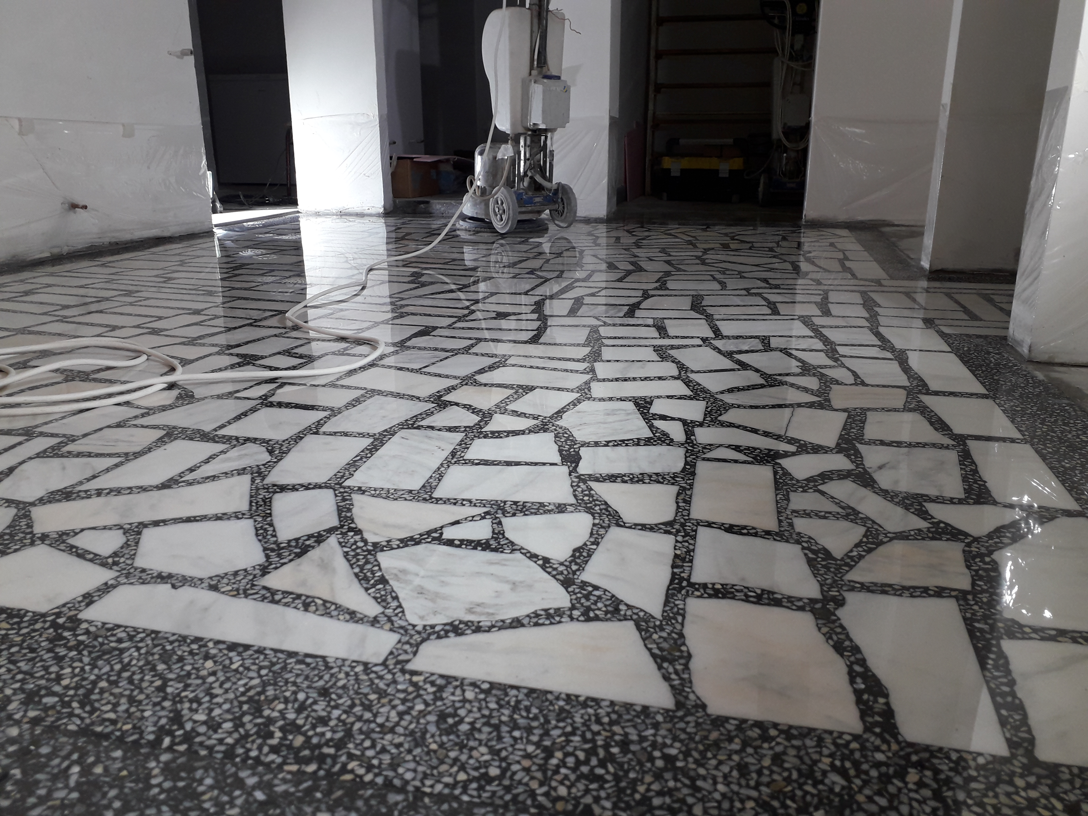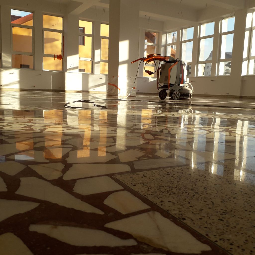 Servicii specializate de slefuire lustruire marmura travertin granit mozaic terrazzo piatra calcar in Cluj – Napoca dar ne deplasam si in tara.