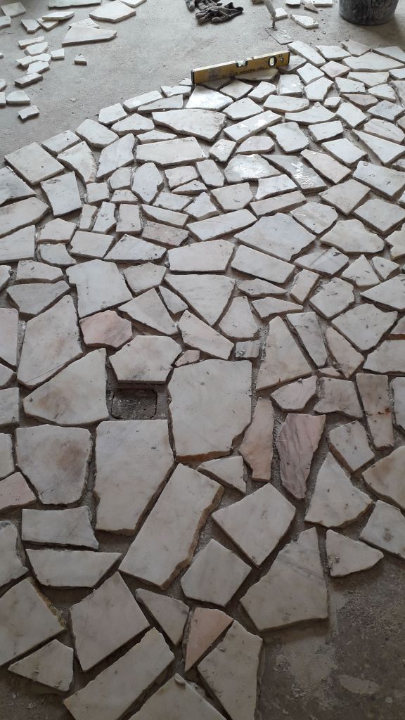 Mozaic venetian cu marmura romaneasca de Ruschita si Moneasa, slefuit, chituit si reconditionat :