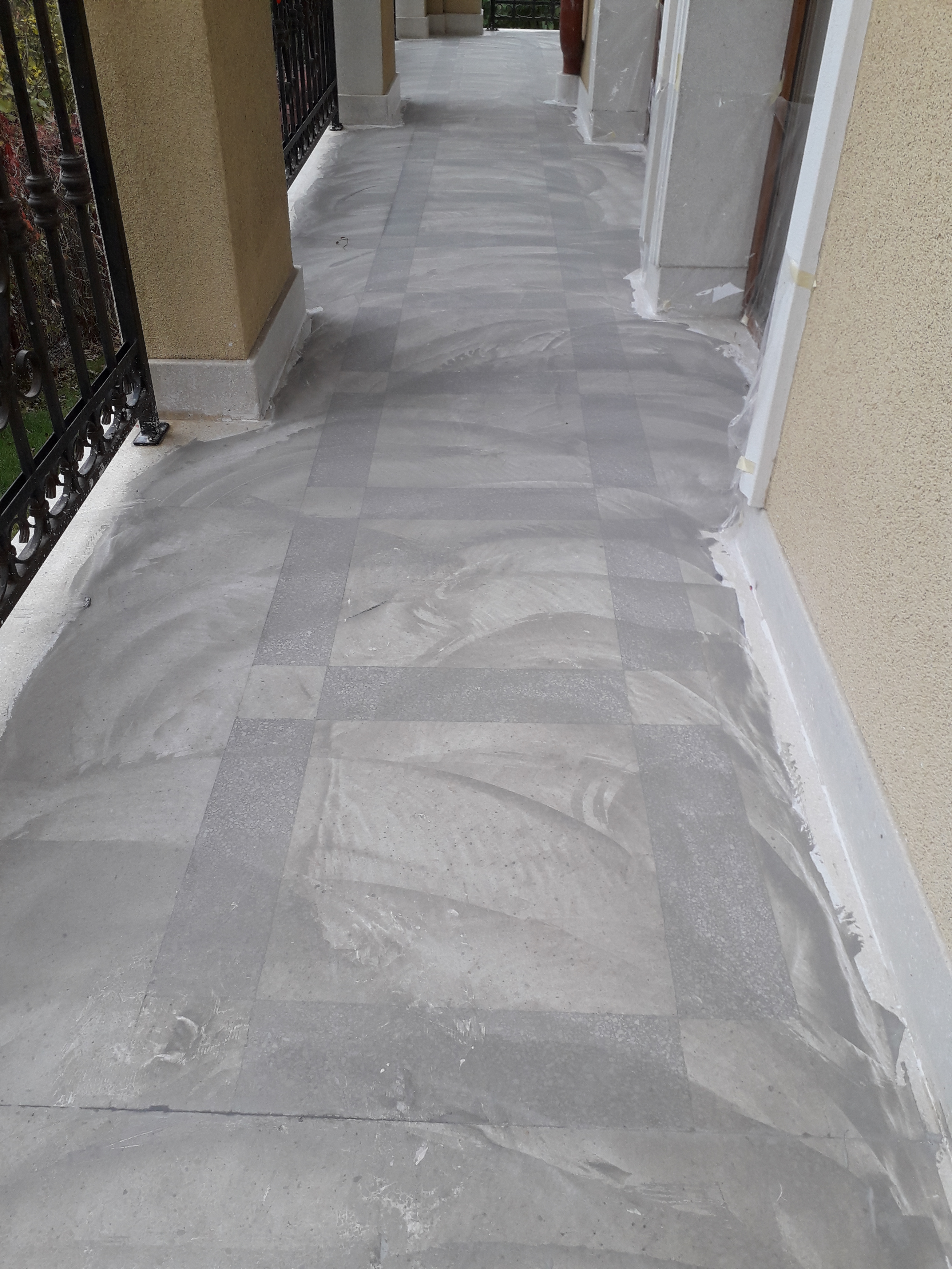 Exemplu de trotuar din mozaic executat de constructor, au incercat ei sa-l si prelucreze. Ne-am oprit la un finisaj mat, deoarece este in exterior si expus la soare si intemperii :