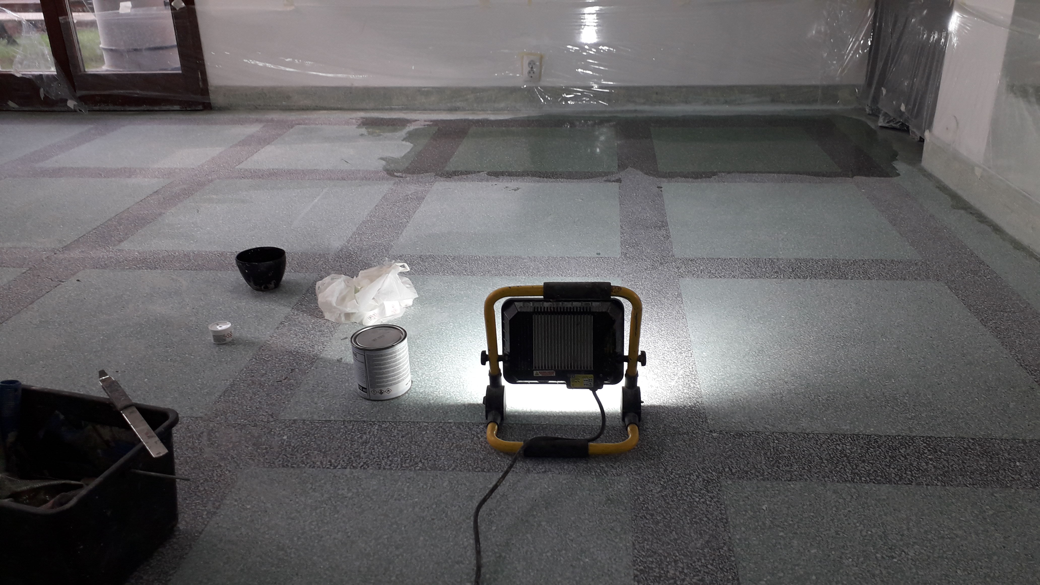 Exemplu de mozaic venetian, o pardoseala de 50 de ani, reconditionata complet :